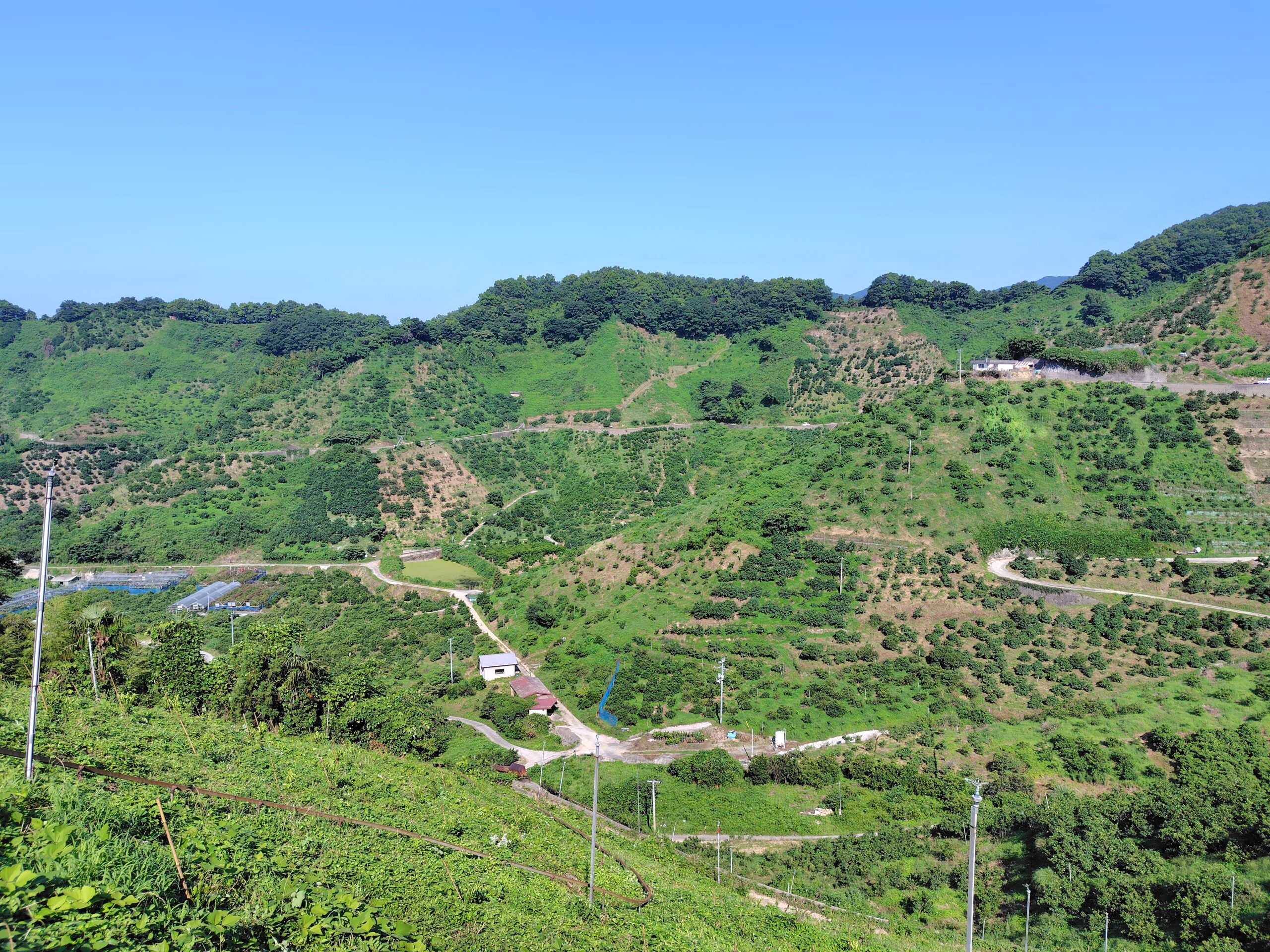 愛媛県宇和島市吉田町は、西日本豪雨の被災地です。あの災害で吉田町の斜面崩壊が起こったのは、なんと2271カ所だったと言われています。ありとあらゆるミカン畑の斜面が崩れていました。当園の園地も例外ではありませんでした。もちろんミカン畑が斜面であり、崩壊しやすい地形だということが前提ですが、私は近年の除草剤の使用の影響も大きいと思います。除草は草刈りをするか除草剤を撒くかの2択ですが、今はほとんどの農家が除草剤を取り入れています。炎天下の中1カ月に1度草刈りをするよりも、除草剤を撒いた方が楽なのは事実です。除草剤を撒くと2カ月ほどは除草をしなくても良いからです。